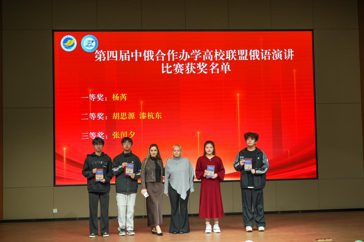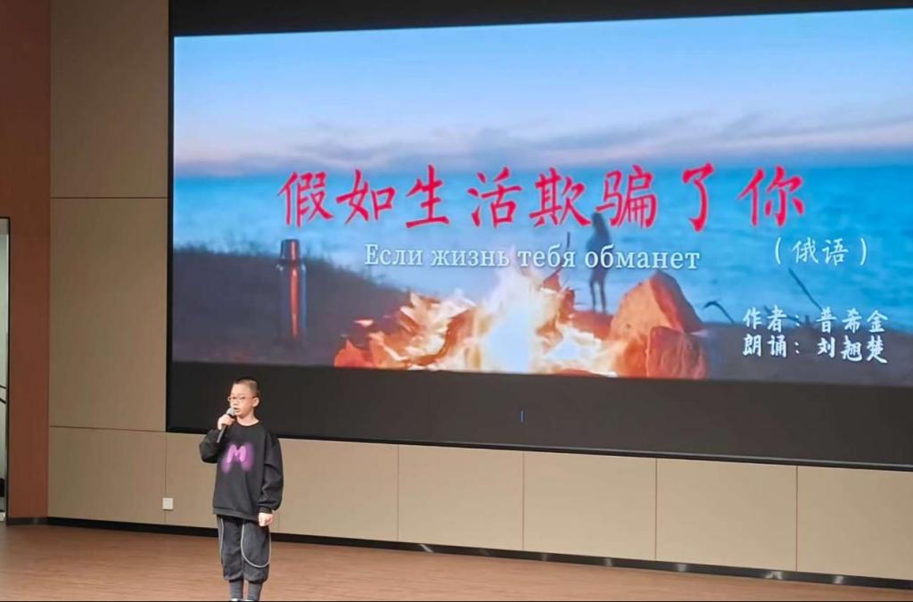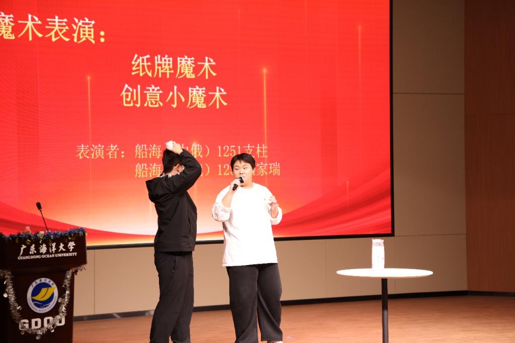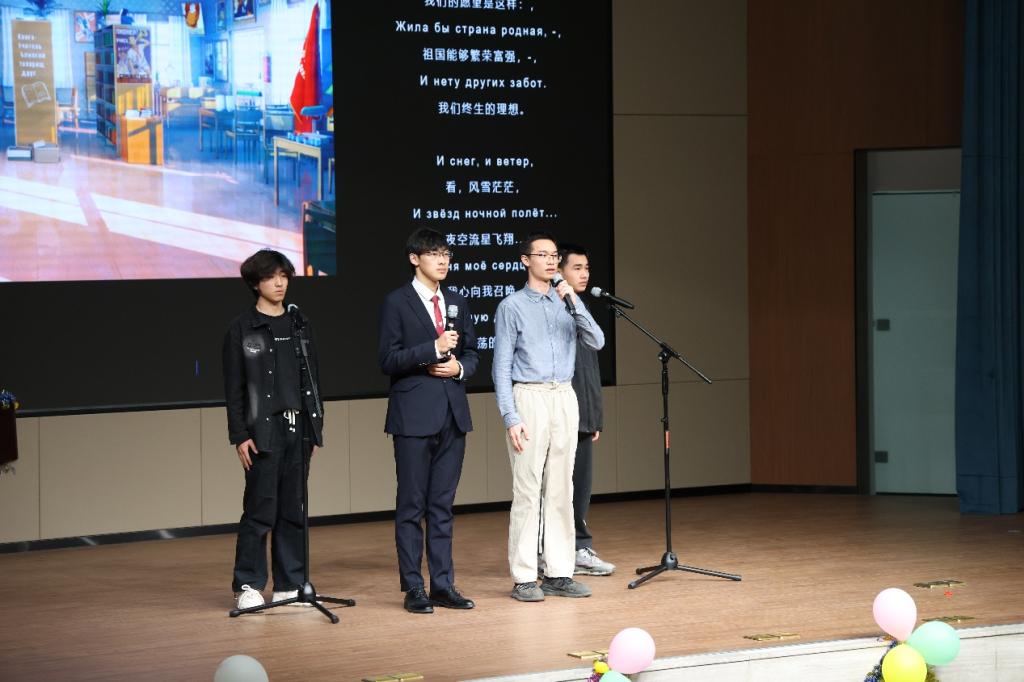 表彰过后,新年联欢晚会精彩上演。中外学生同台献艺,节目形式丰富多样,融合中华传统文化与国际风情。太极拳《大同和韵》、古琴《关山月》尽显中华传统韵味;俄语合唱《歌唱动荡的青春》、小组合唱《世界赠予我的》传递青春活力与多元文化魅力;钢琴曲《火花》、歌曲《My Love》《落叶归根》或明快激昂或温情脉脉;魔术表演与诗朗诵《假如生活欺骗了你》更是引发阵阵掌声。舞台上,中俄文化交相辉映,中外学子情谊深厚,生动展现了复合型人才培养特色与开放包容的办学氛围。晚会期间的互动抽奖与知识问答环节,进一步拉近了师生距离,现场气氛热烈融洽。