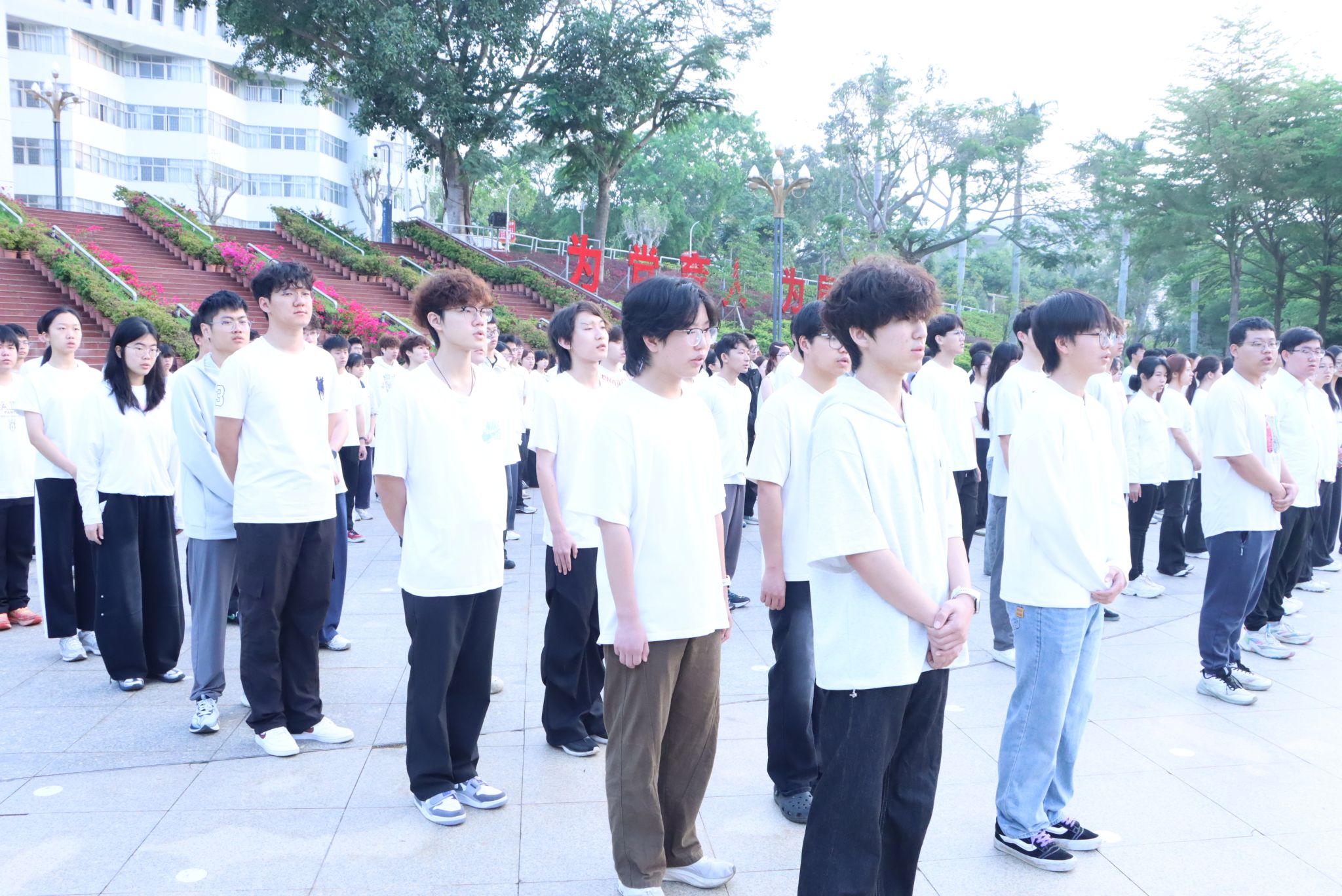 晨光熹微,清风徐来,仪式在肃穆的氛围中拉开帷幕。国旗护卫队队员身着礼服,身姿挺拔、步伐铿锵,怀着对祖国的无限崇敬,迈着整齐划一的步伐护送五星红旗入场,全场人员肃立致敬,目光紧随国旗,尽显青年学子的昂扬风貌。伴随着雄壮激昂的《义勇军进行曲》,五星红旗冉冉升起、迎风飘扬,全体参与人员面向国旗肃立,高声奏唱国歌,歌声里承载着对祖国母亲的深情祝福,更凝聚着新时代青年的责任与担当。优秀学生代表发言完毕后,全场齐唱校歌,嘹亮的歌声回荡在广场上空,传递出学院学子逐梦强国、勇担使命的坚定信念。
